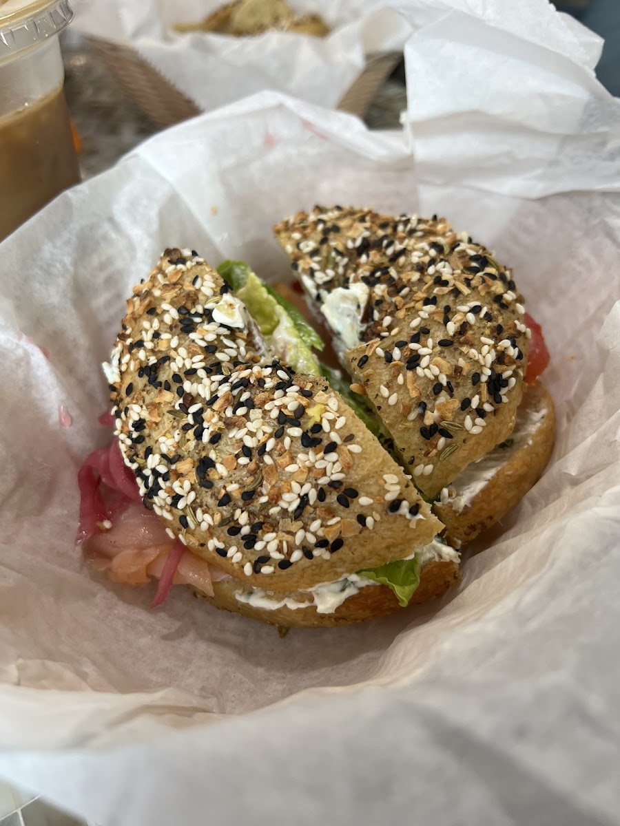 The rave reviews speak for themselves. Karen D. Pearce couldn't help but share her love for their handmade bagels, highlighting the soft, chewy texture and the way the seeds are infused right into the dough. Bryan Hoffman praises the “amazing bagel quality” and the generous portions of lox, which are perfectly complemented by the delightfully balanced dill cream cheese. Jillian Bagby echoes this excitement, delighting in the fresh pickled red onion adorning her lox bagel, while also appreciating the cafe's kid-friendly vibe—a testament to the welcoming nature of this local gem.
